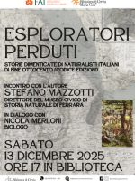 Sabato 13 dicembre 2025 alla Biblioteca Comunale "Maria Goia" di Cervia, Via Circonvallazione Sacchetti, alle ore 17, il Fai di Cervia organizza la presentazione del libro "Esploratori perduti – Storie dimenticate di naturalisti italiani di fine 800" di Stefano Mazzotti - Direttore del Museo Civico di Storia Naturale di Ferrara