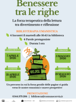La Biblioteca Comunale "Maria Goia" di Cervia è lieta di presentare una nuova, preziosa iniziativa dedicata al benessere personale attraverso la letteratura: "Benessere tra le righe". Si tratta di un ciclo di quattro incontri dal 7 aprile al 19 maggio in cui i libri e le storie diventano strumenti concreti di riflessione, scoperta e cura di sé, in un equilibrio perfetto tra divertimento e introspezione.
